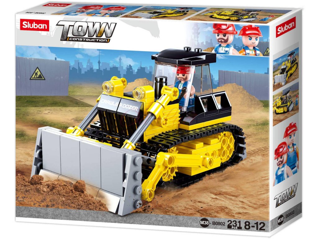 SLUBAN Town (M38-B0802) Buldozer. Kvalitní plastová stavebnice. Lze kombinovat s většinou ostatních známých stavebnic. Součástí 1 figurka.