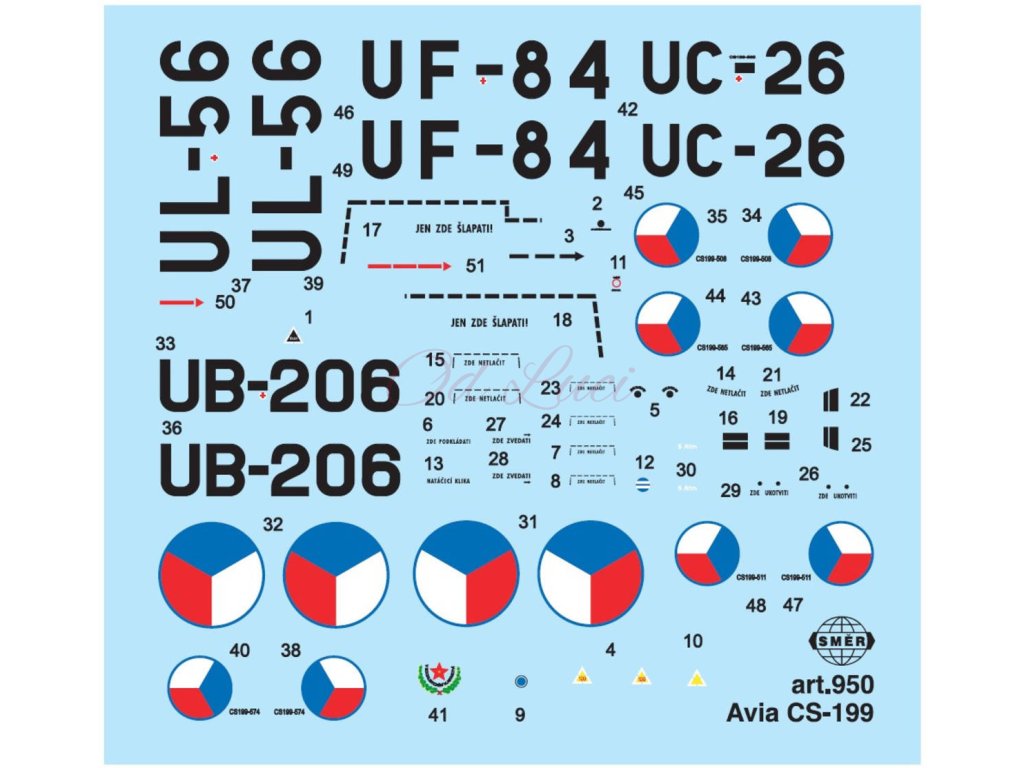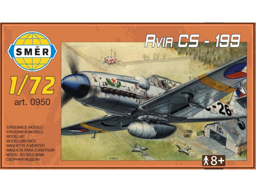 SMĚR 0950 - Československý stíhací letoun bojové letadlo stíhačka Avia CS-199. Modelářská plastová stavebnice. Model letadla určený ke slepení. Kit obsahuje plastikové výlisky z původních forem podniku Kovozávody Prostějov.