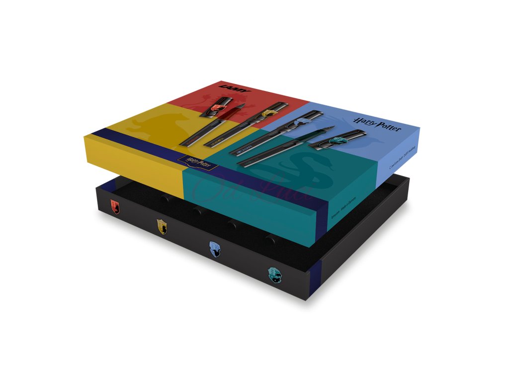 Sada 4 kusů plnicích per LAMY safari inspirovaná světem Harryho Pottera. Každé plnicí pero v sadě reprezentuje jednu z bradavických kolejí, kterými jsou Gryffindor, Hufflepuff, Slytherin a Ravenclaw.
