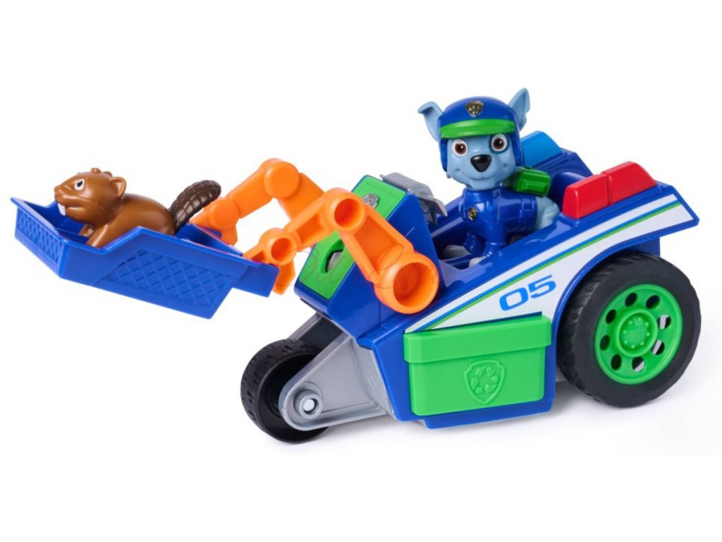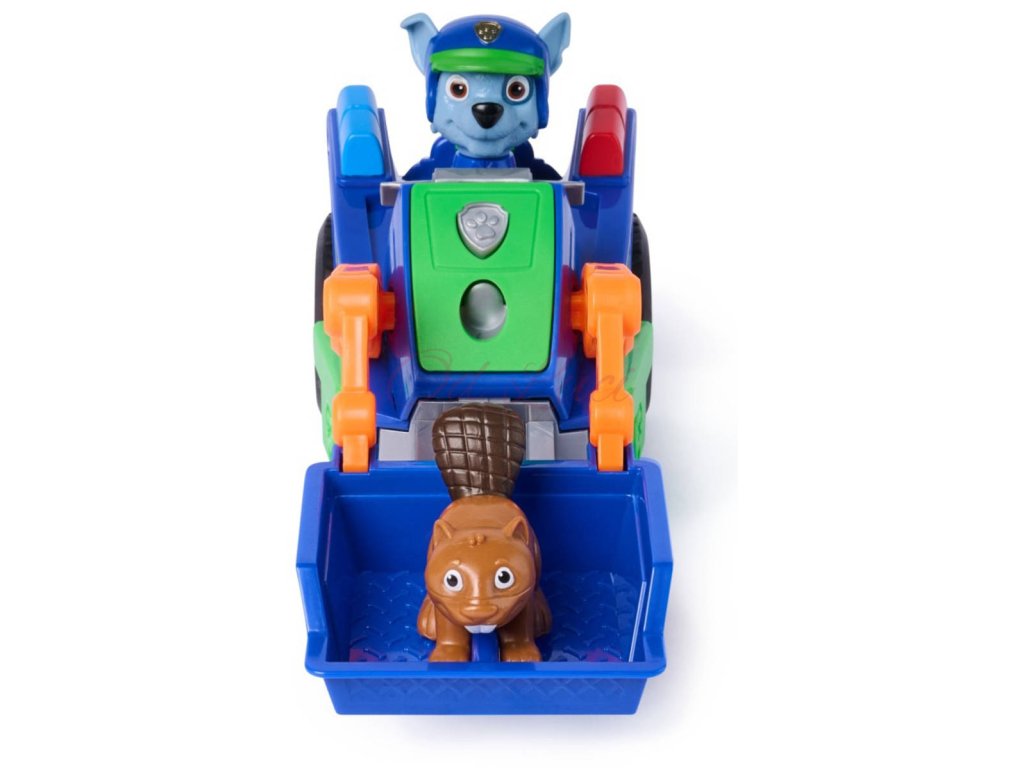 Tématické záchranářské vozidlo Paw Patrol Search and Rescue - Rocky. Velikost vozidla 15cm. Součástí 2 zvířátka.