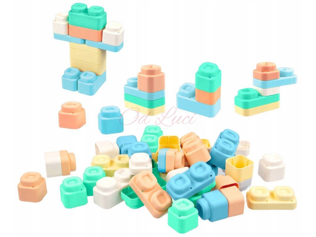 Play&Squish silikonová stavebnice, 24 kostek pro nejmenší děti. Měkké, mačkací silikonové kostičky, v pastelových barvách.