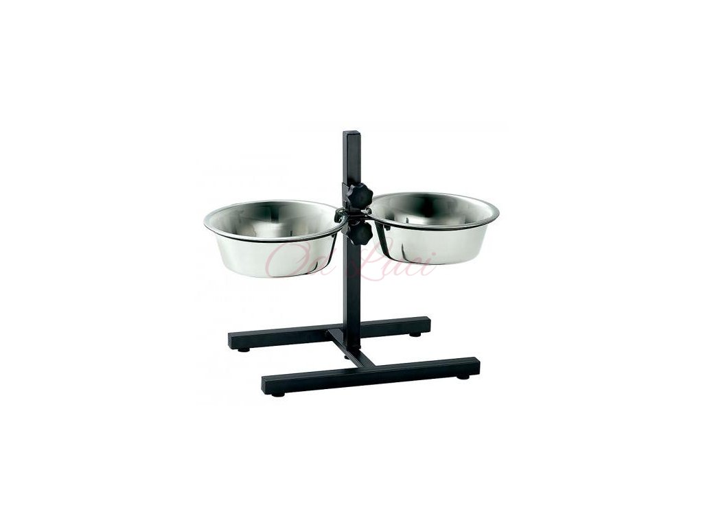 Posuvný stojan na misky. Pes se nemusí při jídle ohýbat a lze tak předejít případným zdravotním komplikacím.