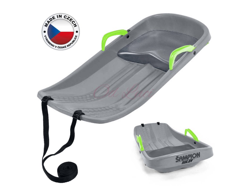Tradiční jednomístný plastový bob pro děti na sníh, z plastu ve světle zelené barvě, s vestavěným sedátkem, které lépe chrání dítě před chladem, vynikající praktickým tvarem a velmi pevnou konstrukcí.
