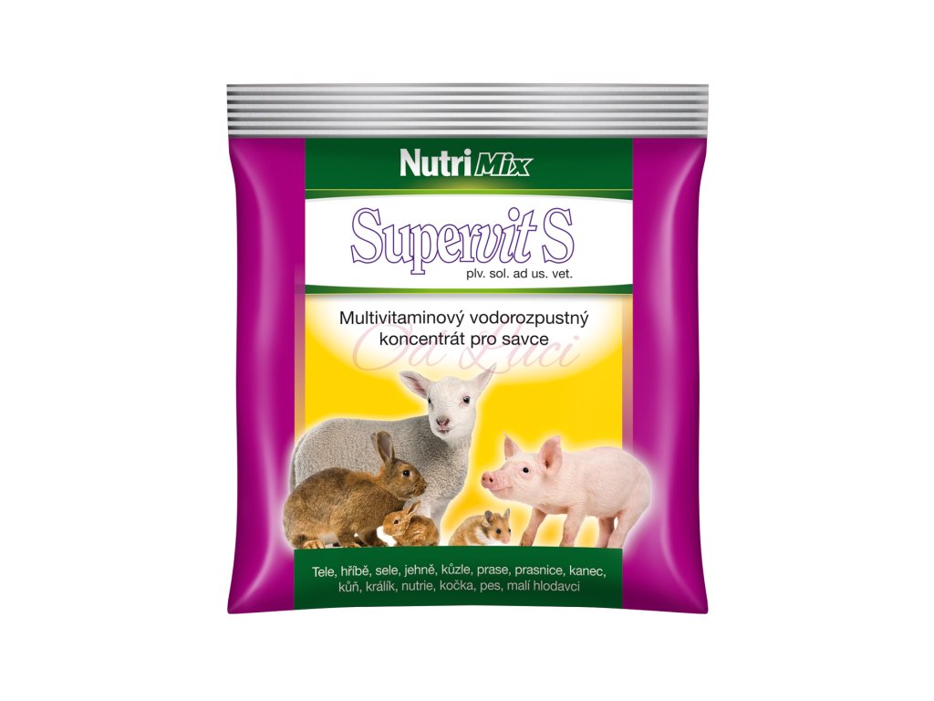 Supervit S je multivitaminový vodorozpustný koncentrát pro savce. Slouží pro zlepšení životaschopnosti mláďat po narození a po odstavu, pro podporu jejich optimálního růstu a vývoje.
