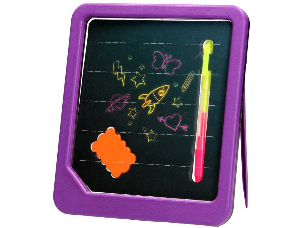 Tabulka psací neonová se stojánkem zářící set s fixem a houbičkou na baterie Světlo