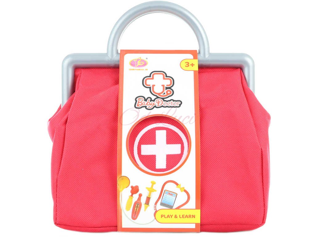 Obsah setu: stetoskop, otoskop, injekční stříkačka, jmenovka, teploměr, taška