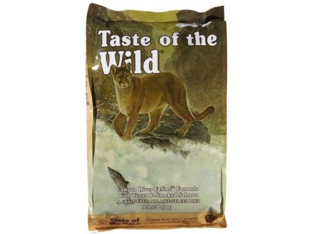 Taste of the Wild je bezobilninové krmivo v podobě granulí. Nabízí optimální výživu ve všech životních fázích. Vysoký podíl bílkovin zajišťuje vitalitu a zdraví všech koček. Lahodná receptura se pstruhem a uzeným lososem je doplněna o sladké brambory a hrášek.