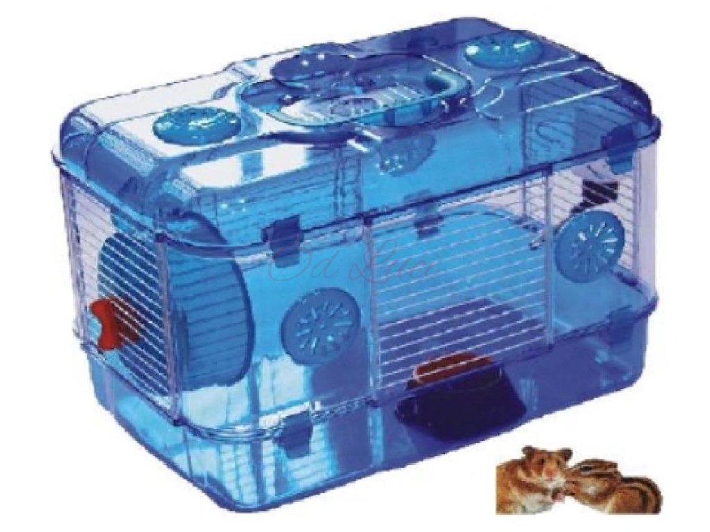 Klec s vybavením pro menší hlodavce jako jsou křečci, osmáci a ostatní hlodavci podobné velikosti. Do spodní části je vhodné dát piliny, hobliny, nebo jinou jemnou podestýlku.