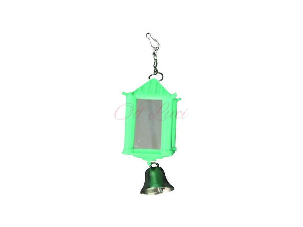 Plastové zrcátko ve tvaru lucerničky se zvonkem k zavěšení do klece