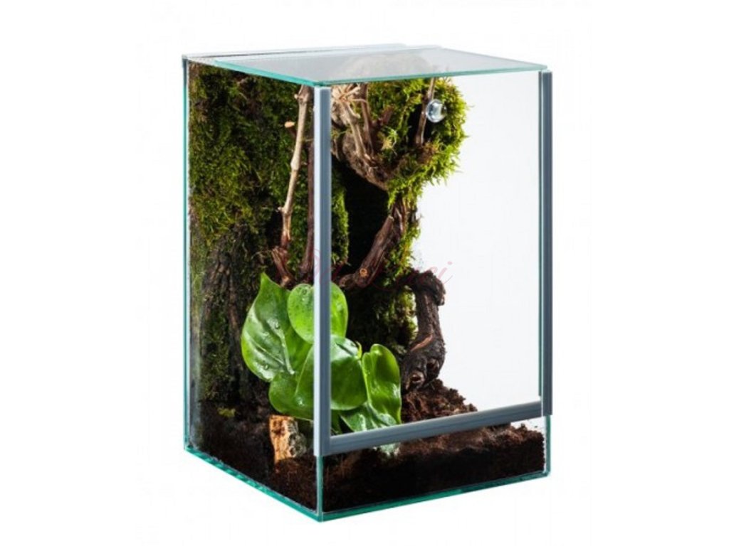 Terárium je přizpůsobeno pro pavouky, cvrčky, brouky a podobně malá zvířata. Jedná se o skleněnou nádrž s větrací mřížkou a pohodlným přístupem do interiéru bočním otevřením dveří. Vybavení není součástí terária.