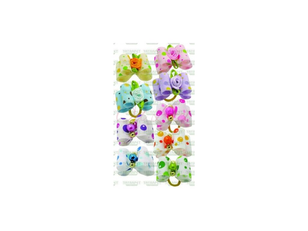 Zdobené mašličky s gumičkou v pestrých barvách. Vyrobeno ze saténové látky.