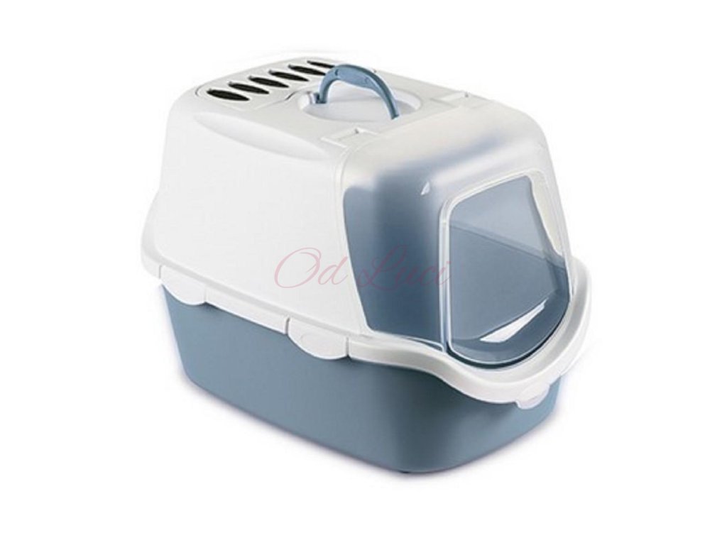 Prostorné kočičí WC s krytem, dvířky, protipachovým filtrem, úchytem na přenos toalety a lopatkou. WC je snadno omyvatelné. Kočky jsou přirozeně velmi čistotné, ale nerodí se jako domácí zvířátka. Aby se koťátka naučila žít v bytě či domě, potřebují mít toaletu v místnostech, kde tráví nejvíce času. Toaleta by neměla být umístněna v blízkosti misky s krmením.