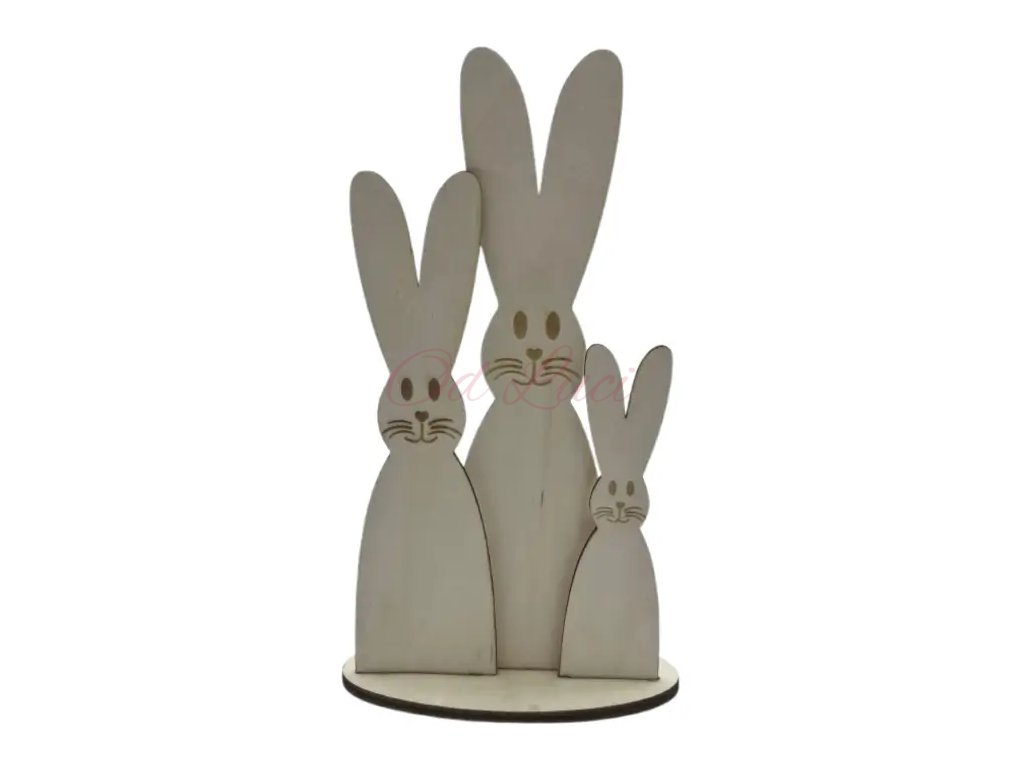 - Dominantní dekorace: Výrazná dřevěná ozdoba s motivem třech zajíčků, která se díky své výšce 25 cm stane středobodem vaší jarní výzdoby.