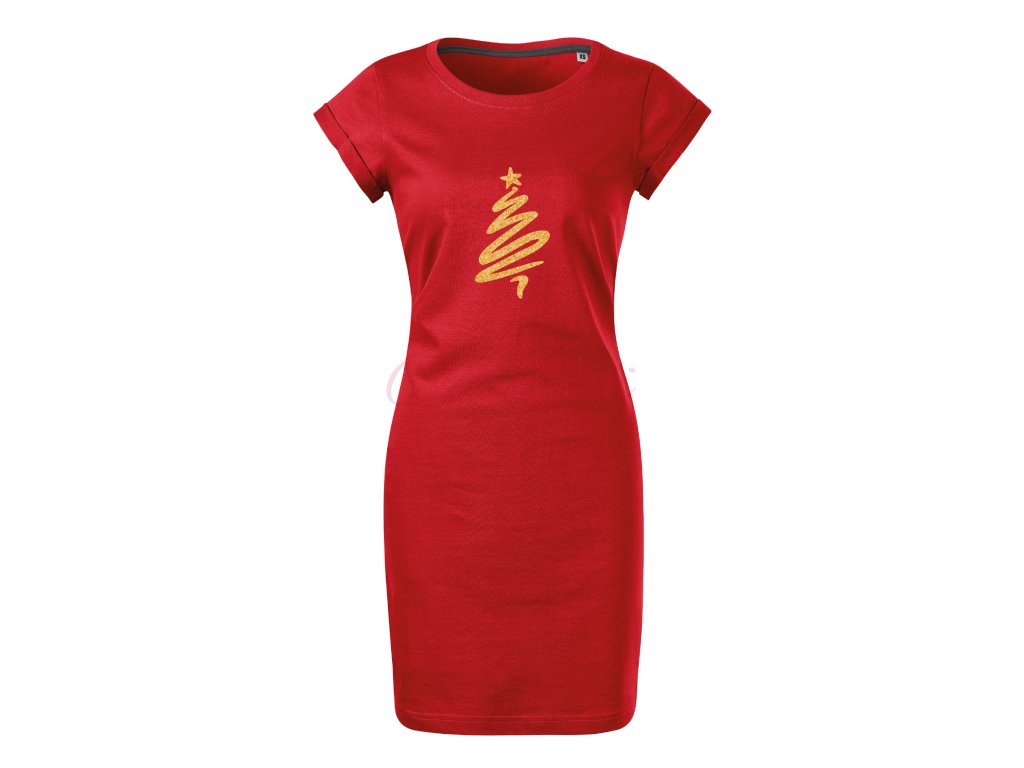 Vykročte do vánočních svátků ve velkém stylu s těmito elegantními šaty ozdobenými motivem zlatého stromečku! Perfektní pro každou slavnostní příležitost, tyto šaty kombinují sváteční šmrnc s pohodlím.