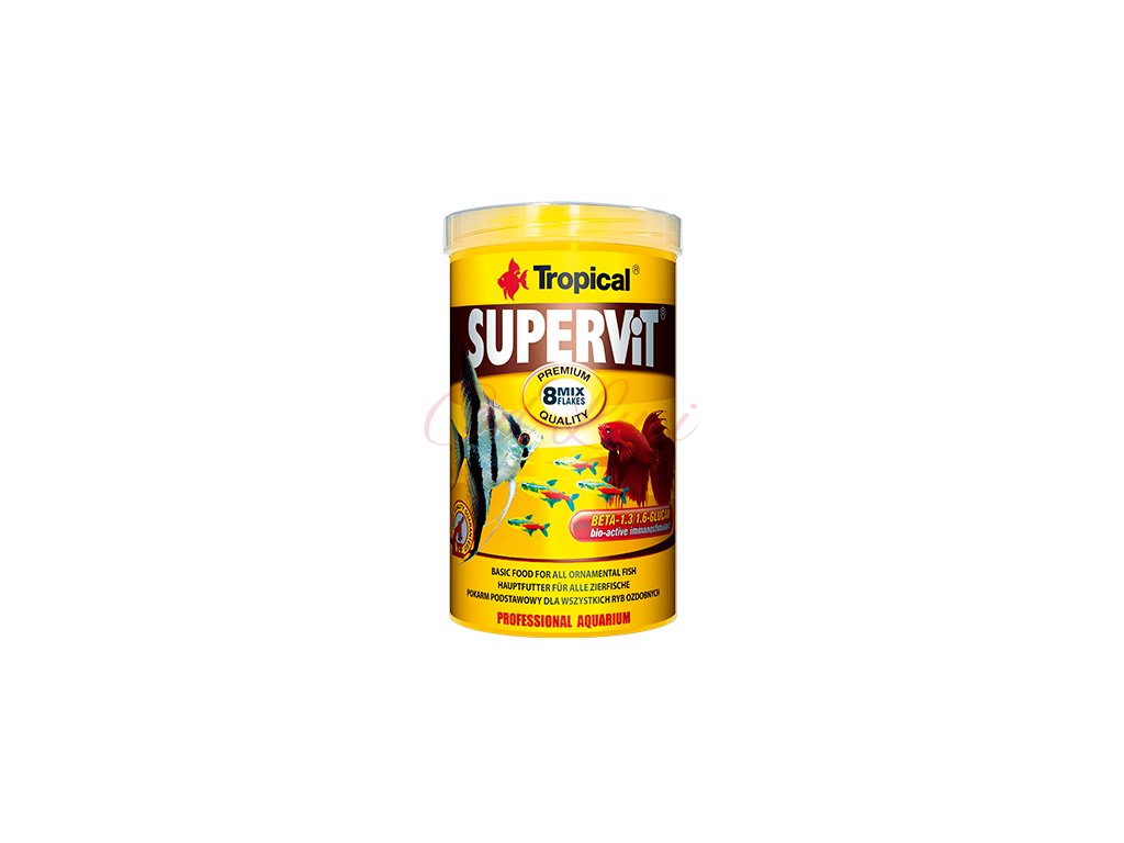 Mnohosložkové vločkové krmivo, určené ke každodennímu krmení všežravých akvarijních ryb. Obsahuje osm různých druhů vloček, obsahujících mimo jiné: imunostimulátor beta-glukan, astaxanthin, řasu kelp, spirulin, korýše včetně chutného krila. Několik desítek nejkvalitnějších vybraných složek, které doplňuje optimálně sestavené spektrum vitamínů a mikročástic, zajišťuje potřebné živiny a energií i pro ty nejvíce vybíravé druhy ryb. Neobvyklé bohaté složení krmiva Supervit způsobuje, že se používá především v populárních mnohodruhových akváriích, kde je základem potravy, která se pouze v případě potřeby doplňuje rostlinnými krmivy a krmivy s vysokým obsahem bílkovin.