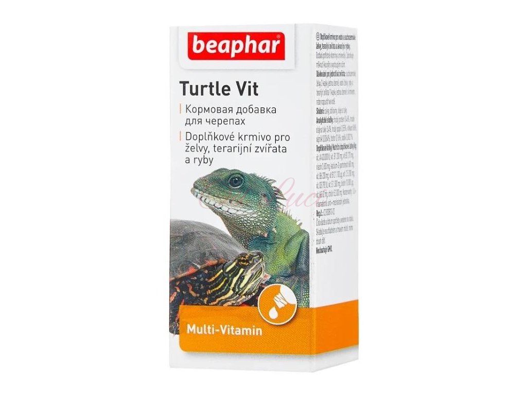 Dávkování: suchozemské želvy 2 kapky jednou denně, vodní želvy, ryby a terarijní zvířata 1 kapku denně s krmivem, nebo rozpustit ve vodě