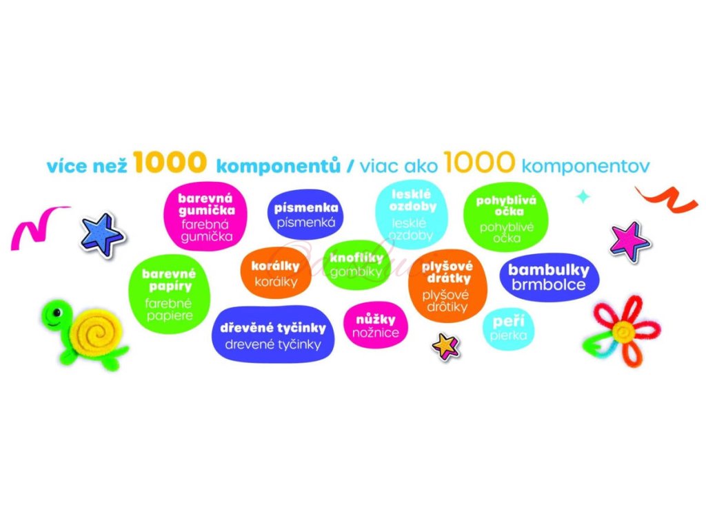 Více než 1000 různorodých komponentů pro nekonečné hodiny zábavného tvoření. Vše je uloženo v praktickém uzavíratelném plastovém boxu s víkem a uchem, takže se nic neztratí a snadno se uklízí i přenáší.