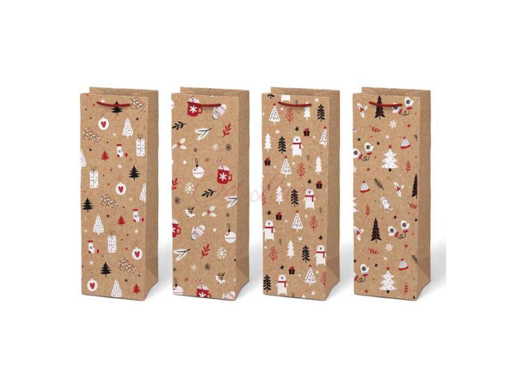 Vánoční taška na lahev - KRAFT mix / 12 x 36 x 10 cm