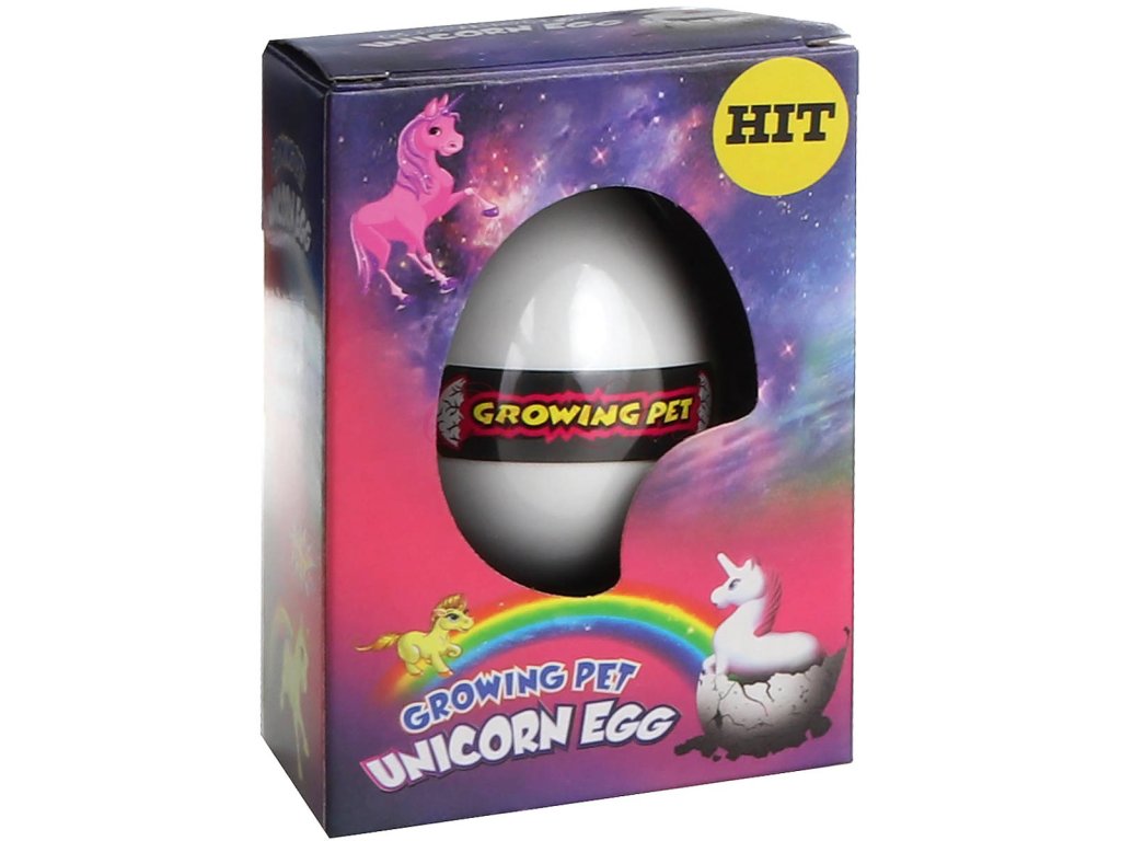 Vejce jednorožec - zvířátko ve vejci rostoucí a líhnoucí se. Vložte vajíčko do vody a po 12-24 hod vajíčko popraská. Po 48 hod se z vajíčka vyklube figurka jednorožce. Velikost zvířátka cca 6cm. Žertovný předmět.