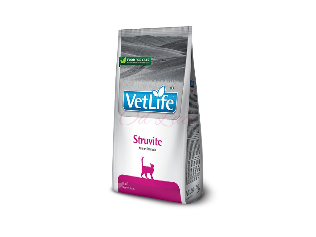 Farmina Vet Life Struvite je kompletní dietetické krmivo pro kočky určené pro rozpouštění a snížení recidivy tvorby struvitových kamenů. Je vhodné také při onemocnění dolních močových cest.