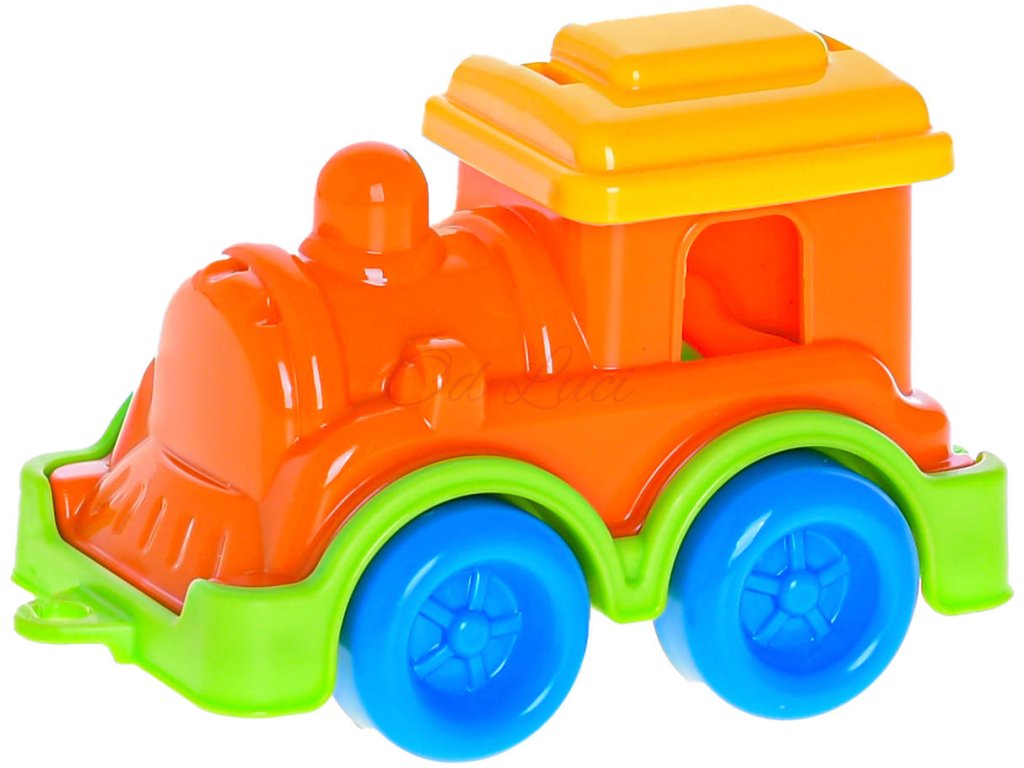 Veselá barevná lokomotiva, mašinka z lehkého plastu, bezpečná hračka pro nejmenší děti - zaoblené hrany.