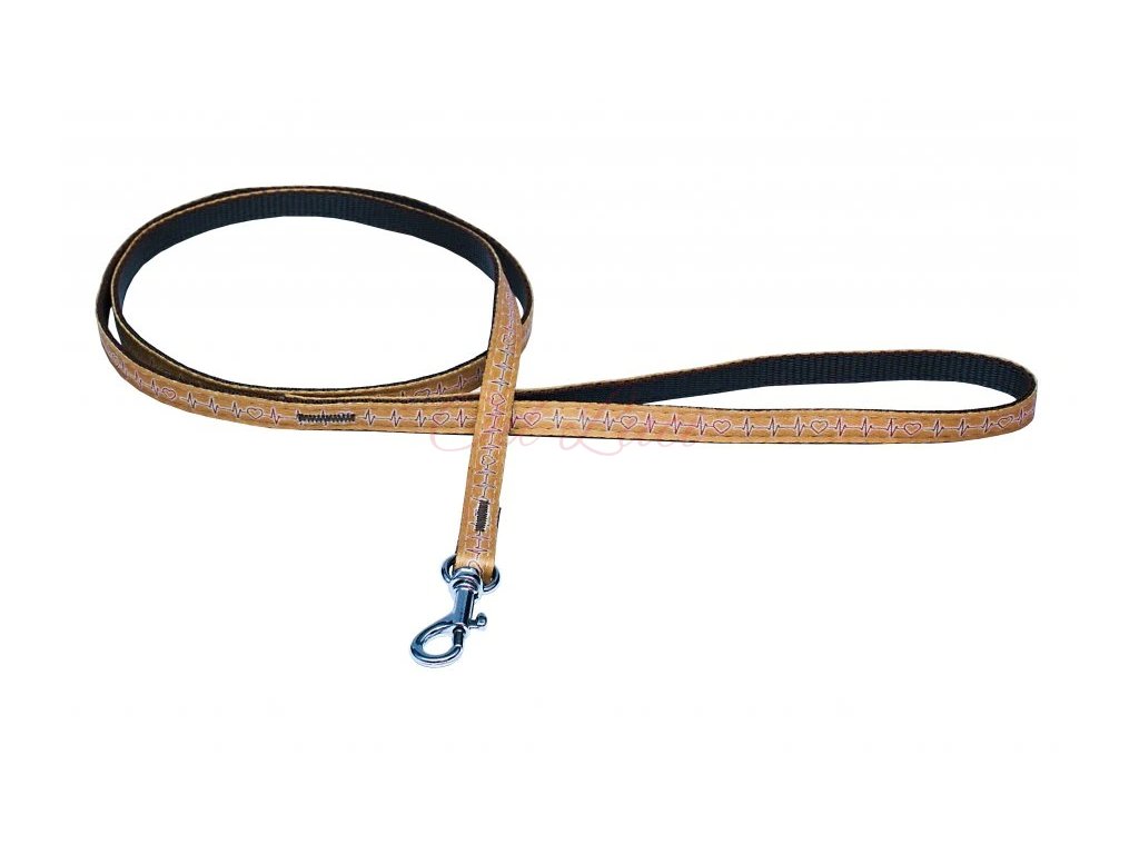 Vodítko je vyrobeno z popruhu s motivem EKG, je velmi měkké a příjemné. Spoje jsou prošity a tak dosahují maximální pevnosti.
