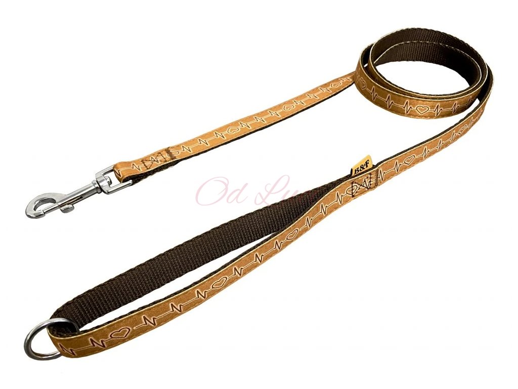 Vodítko je vyrobeno z měkkého popruhu s motivem EKG. Vodítko je pevně prošité, v uchu všitý svařovaný kroužek pro zkrácení na polovinu a přehození pes tělo.