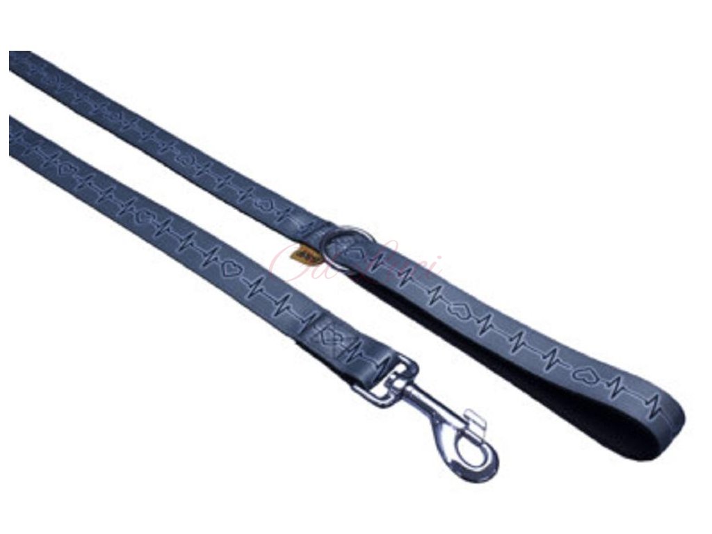 Vodítko z měkkého popruhu s motivem EKG. Vodítko je pevně prošité, v uchu všitý svařovaný kroužek pro zkrácení na polovinu.