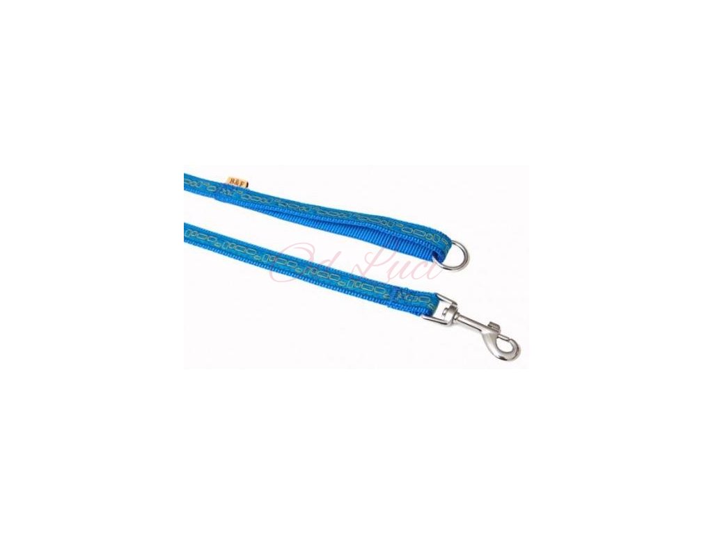 Vodítko z popruhu s oblíbeným motivem OBDÉLNÍČEK. Vodítko je pevně prošité, v uchu všitý svařovaný kroužek pro zkrácení na polovinu. Je vhodný pro střední plemena.