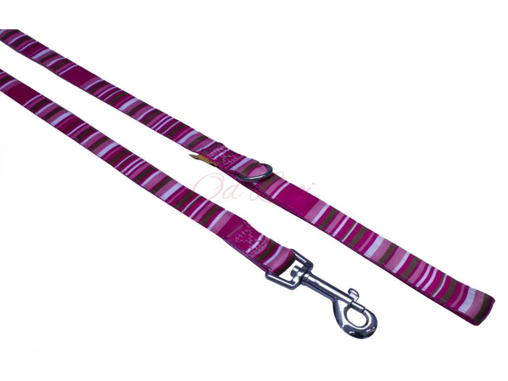 Vodítko z měkkého popruhu s motivem PROUŽKY je pevně prošité, v uchu všitý svařovaný kroužek pro zkrácení na polovinu.
