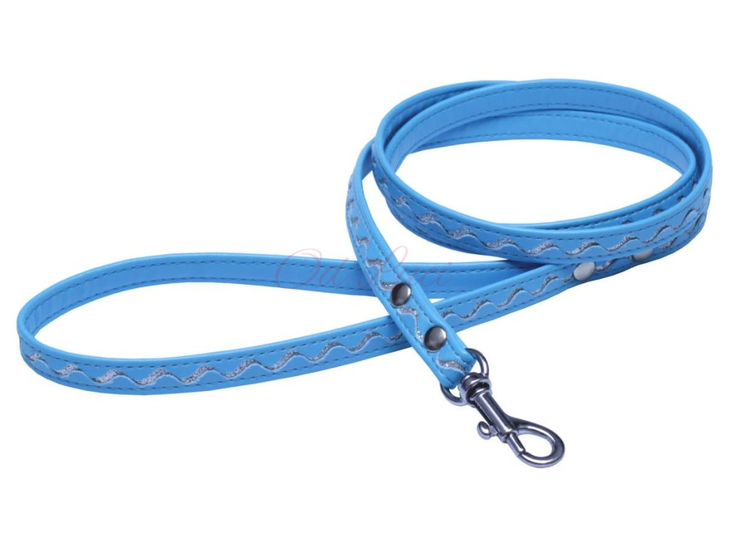 Vodítko koženka stříbrné vlnky - sv.modré 1,2×120cm