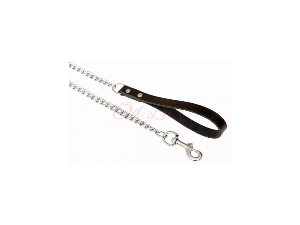 Řetízkové vodítko s malými očky je vyrobeno z pevného materiálu. Všechny jeho díly jsou svařeny a tak vodítko dosahuje maximální pevnosti. Ucho vodítka je vyrobeno z vrchové hovězí kůže, promaštěné, takže je velmi příjemné do ruky. Je vhodný pro střední a velká plemena.