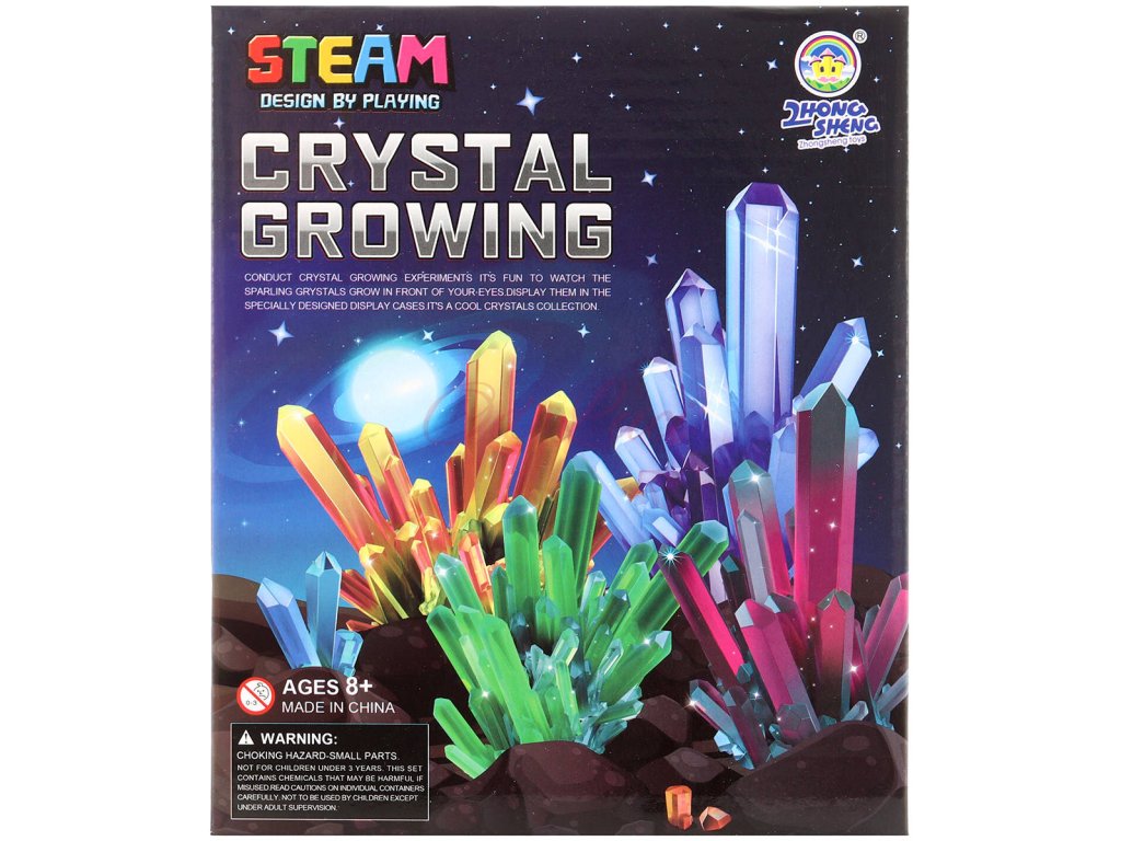 Experimentální sada pěstování krystalů. Vypěstujte si krystaly s naší barevnou vzdělávací sadou! Máte rádi chemii? Pokud ano, něco pro vás máme. Sledujte, jak krystalické částice v roztoku, který si sami vyrobíte, budou neustále absorbovány na krystalu. Sledujte, jak vám krystal poroste před očima! Taková zábava je ideální způsob, jak se blíže seznámit s prvními chemickými procesy. Pomocí nástrojů si malý chemik vytváří vlastní nádherné krystaly. Pěstování krystalů je nejen úžasný experiment, ale také zábava, která rozvíjí kreativitu a vědecké schopnosti.