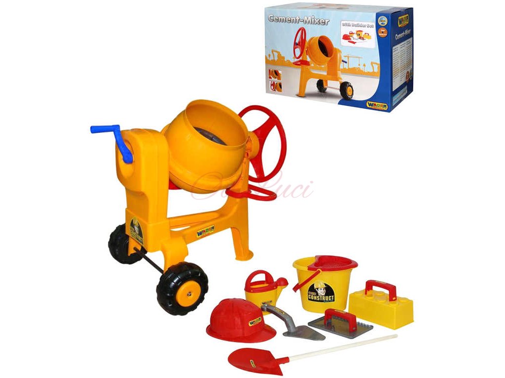 WADER Dětská míchačka Construct žlutá s přilbou a zednickým nářadím 50649