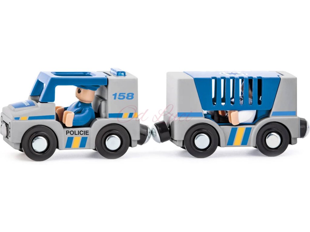 Policejní vozidlo v barvách českých záchranných složek doplněné o plastové doplňky a figurky s pohyblivými klouby. Grafický design českých výtvarníků. Vhodné jako příslušenství k vláčkodráhám WOODY. Kompatibilní i s ostatními vláčkodráhami nabízenými na našem trhu.