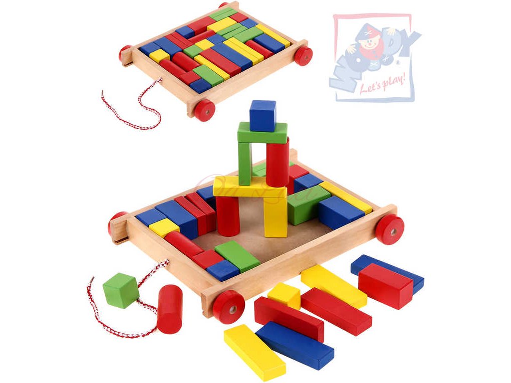 WOODY DŘEVO Vozík s kostkami malý 34 dílků *DŘEVĚNÉ HRAČKY*