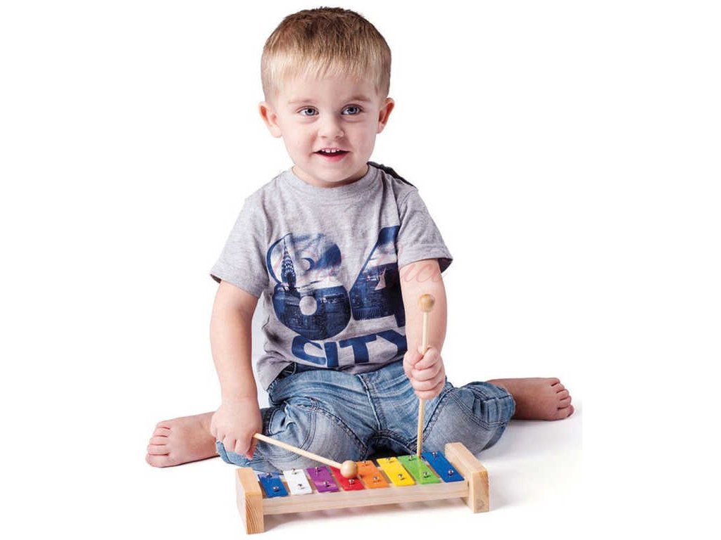 Kvalitní dřevěný xylofon se dvěma paličkami a pestrými barevnými plátky, pro všechny malé muzikanty. Xylofon patří mezi bicí nástroje. Jeho kovové plátky jsou usazeny na filcových kroužcích, které regulují ostrost