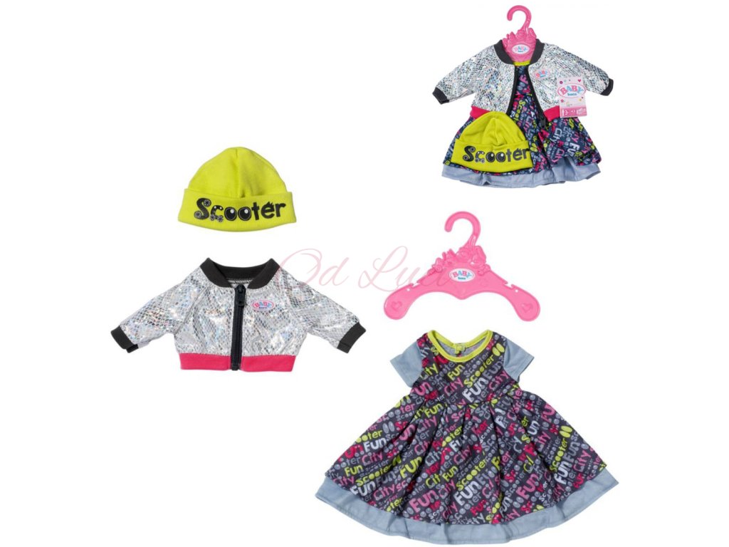 ZAPF Baby Born oblečení na skútr, obleček pro panenku mininko o velikosti 43cm. Součástí jsou šaty, bunda a čepice.