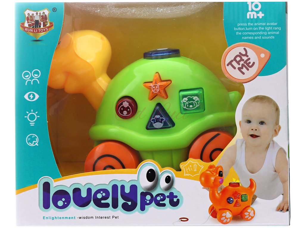 Želva baby tahací zvířátko na baterie pro miminko 2 barvy Světlo Zvuk