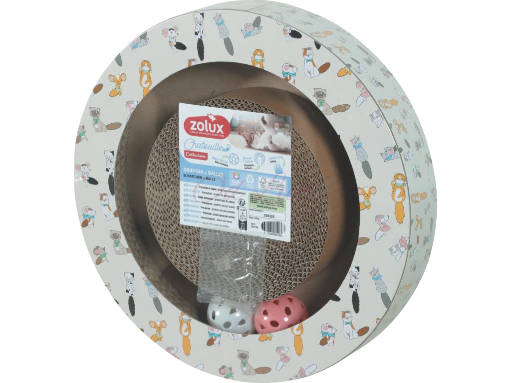 Zolux Škrabadlo CHATOUILLE lepenkové kulaté s míčky